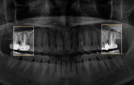 상악 좌측 구치부 안에 뼈가 부족한 검은 자리가 보이지만 수술 하면서 염증을 제거하고 인공뼈를 이식한다면 좋은 결과가 있을 것으로 예상되었습니다.